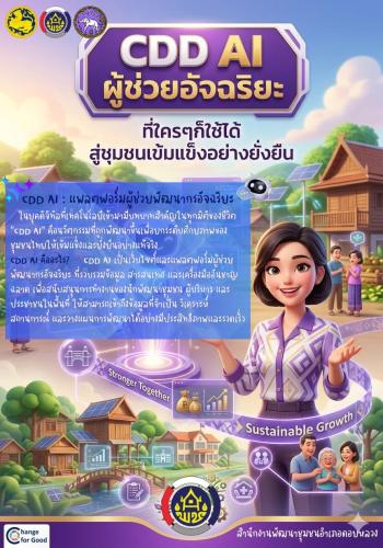 CDD AI คือ เว็บไซต์และแพลตฟอร์มผู้ช่วยพัฒนากรที่ใช้เทคโนโลยีปัญญาประดิษฐ์ (AI) รวบรวมข้อมูล เครื่องมือ และสารสนเทศสำคัญด้านการพัฒนาชุมชนไว้ในที่เดียว ช่วยให้พัฒนากร ผู้บริหารและประชาชนเข้าถึงข้อมูลที่จำเป็นได้ง่ายขึ้น พร้อมสามารถวิเคราะห์สถานการณ์ชุมชน วางแผนการพัฒนาได้อย่างรวดเร็ว แม่นยำ และมีประสิทธิภาพ